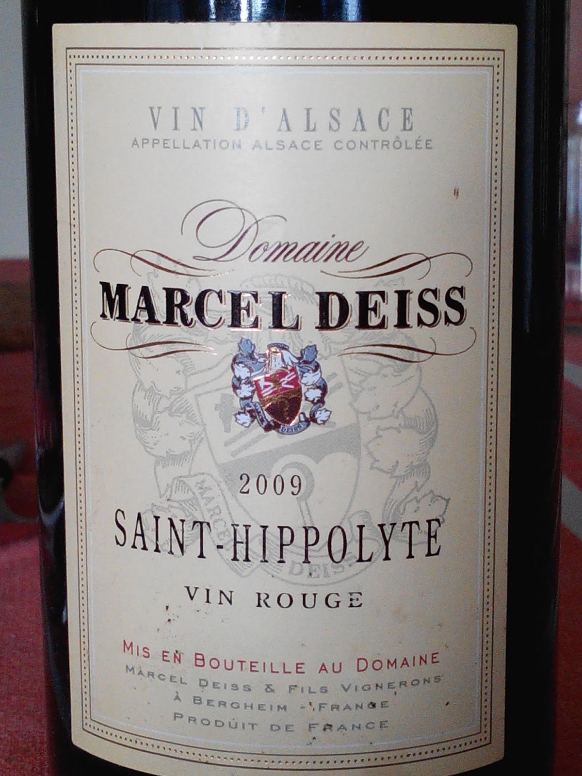 Rouge de St Hyppolite 2005, Marcel Deiss : robe rouge évoluée, tirant sur des tons marron-orangé, encore profonde.
